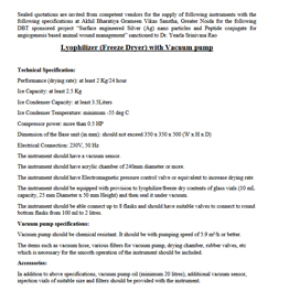 Sealed quotationsare invited from competent vendors for the supply of following instruments with the following specifications at Akhil Bharatiya Grameen Vikas Sanstha, Greater Noida for the following DBT sponsored project “Surface engineered Silver (Ag)nano particles and Peptide conjugate for angiogenesis based animal wound management”sanctioned to Dr. Yearla Srinivasa Rao